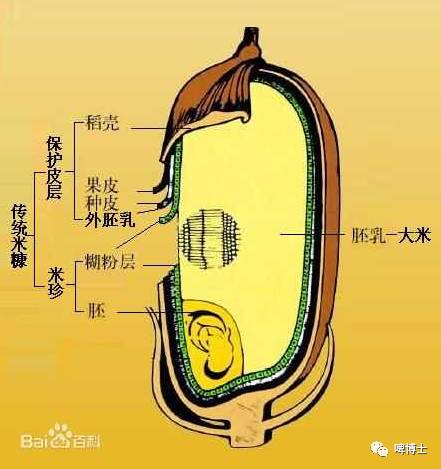 而我们吃的大米只是米粒的一部分,经过了清理、砻谷、碾米等步骤后,食用的仅仅是胚乳和糊粉层而已,换句话说:只是一坨淀粉。